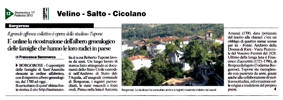 Corriere di Rieti del 17 febbraio 2013 - Articolo di Francesca Sammarco