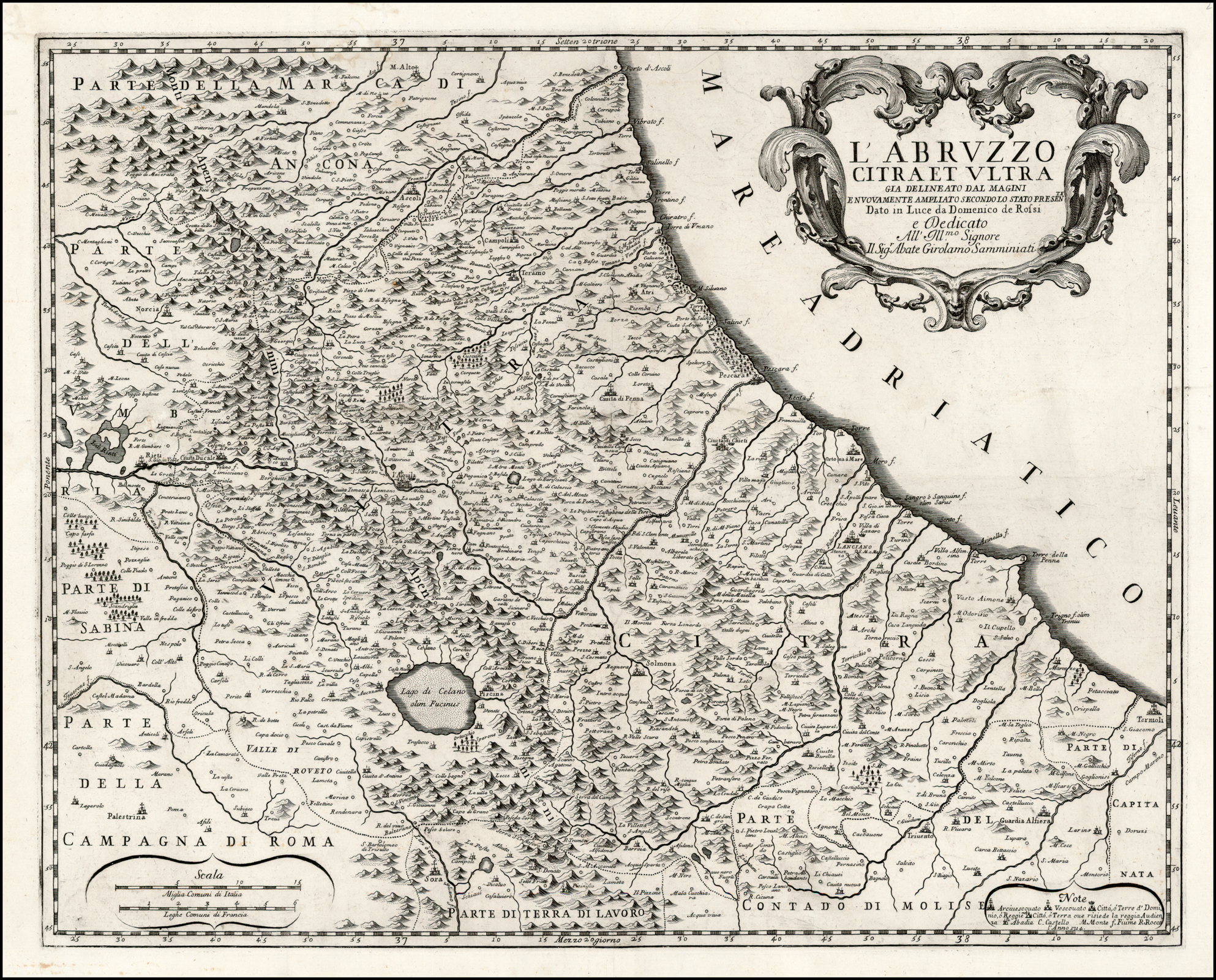 Carta topografica Abruzzo Citra et Ultra già delineato dal Magini e nuovamente ampliato secondo lo stato presente. Dato il luce da Domenico de Rossi - Gentilmente inviata da Giovanni Zaccaria - http://gallica.bnf.fr/ark:/12148/btv1b530426402/f1.item.r=abruzzo.zoom - http://gallica.bnf.fr/ark:/12148/btv1b530426402/f1.item.r=abruzzo.zoom