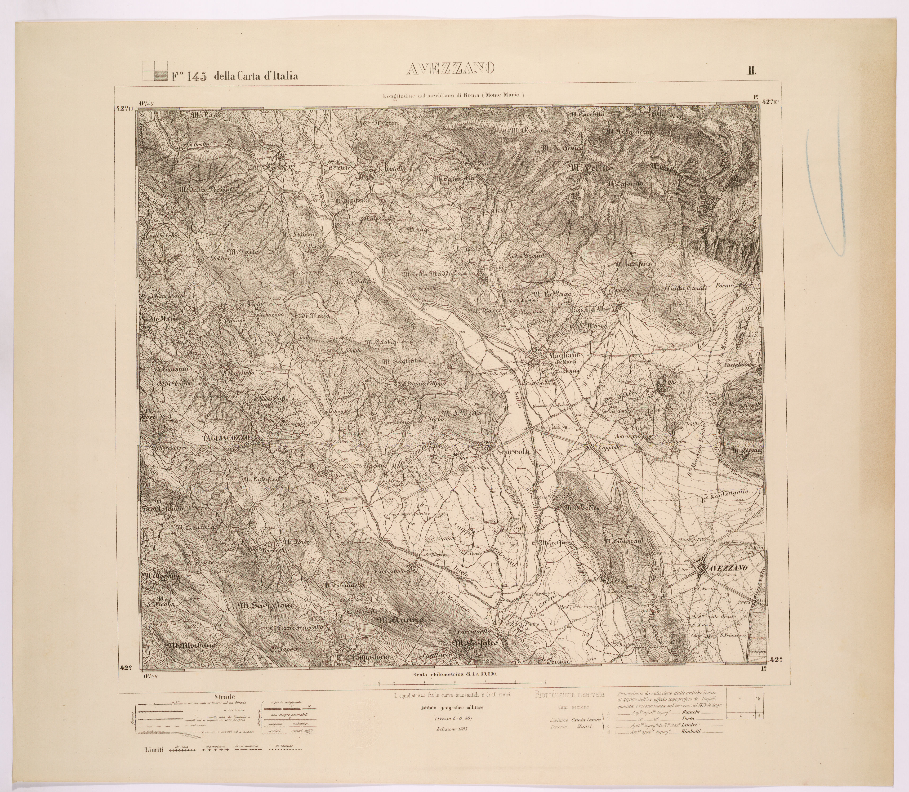 Istituto Geografico Militare, Avezzano, F.145 della carta 1:100.000, II., scala 1:50.000, Firenze 1875. - Tratto da: https://geoportale.cittametropolitanaroma.it/cartografia-storica/21/42/avezzano-foglio-145-della-carta-ditalia-ii