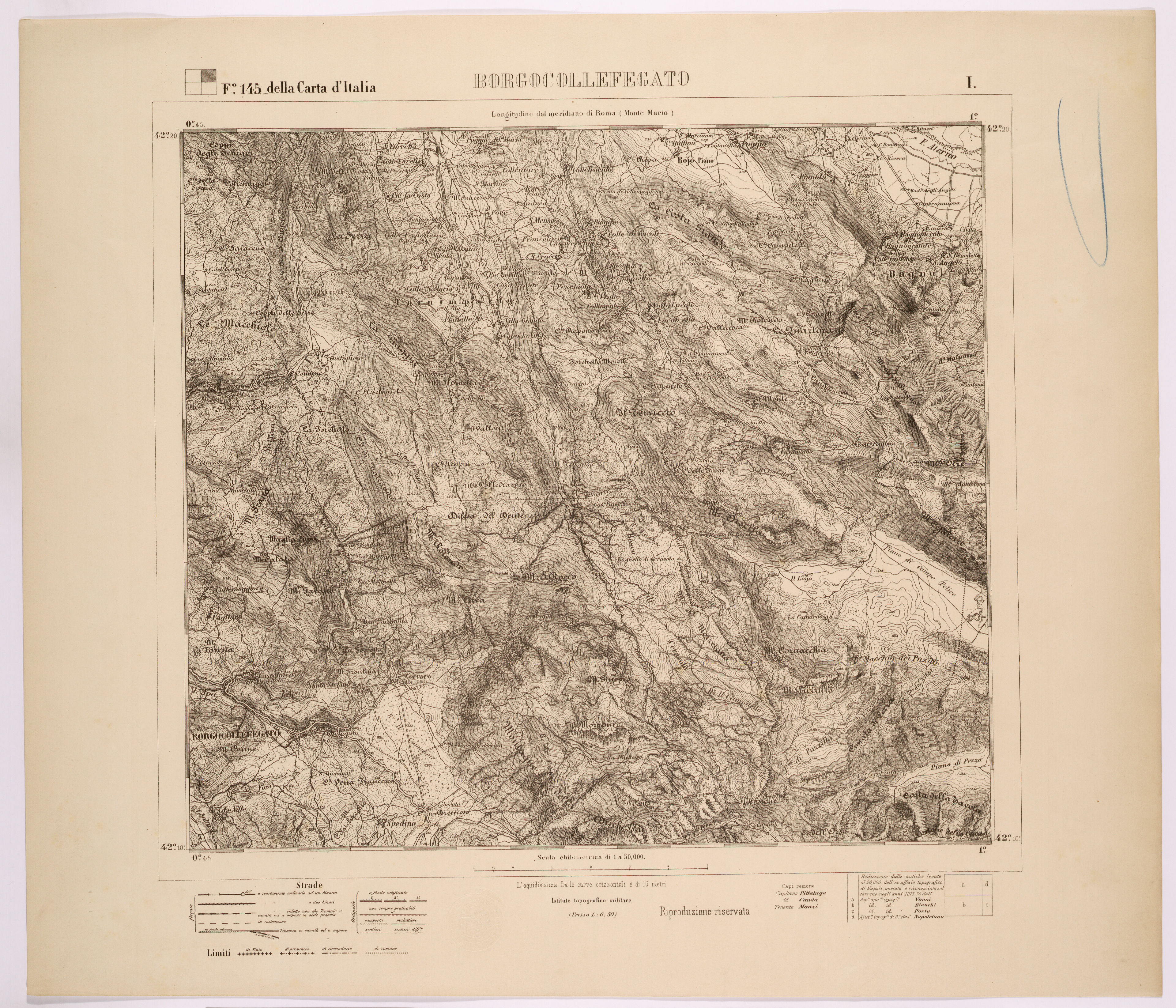 Istituto Geografico Militare, Borgocollefegato, F.145 della carta 1:100.000, I., scala 1:50.000, Firenze 1875-1876. - Tratto da: https://geoportale.cittametropolitanaroma.it/cartografia-storica/21/42/borgocollefegato-foglio-145-della-carta-ditalia-i