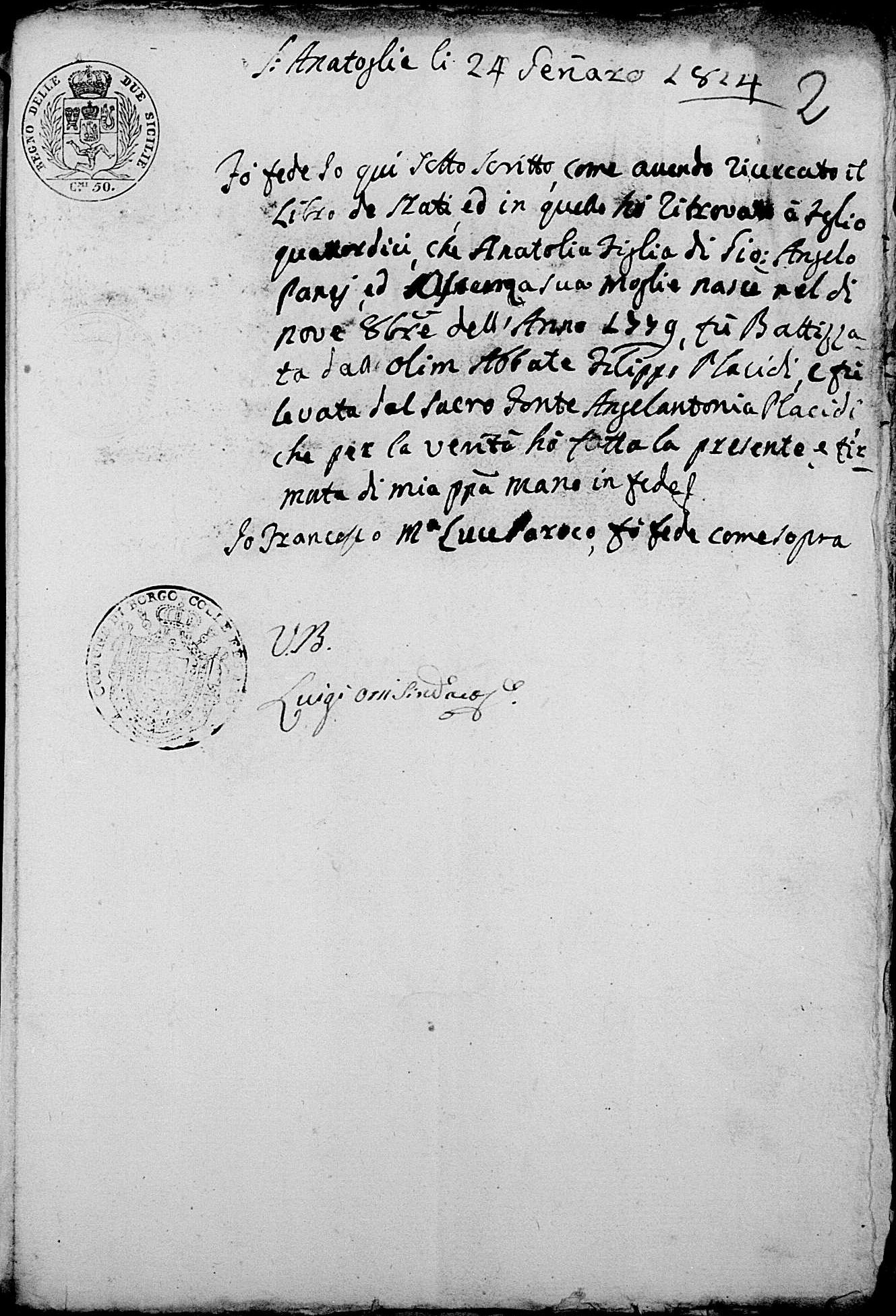 1814 - Atto di nascita di Anatolia PaneiCon timbro e firma del primo sindaco del Comune di Borgocollefegatohttps://santanatolia.it/galleria/documenti/atti-dello-stato-civile-dellaquila/1814-atto-di-nascita-di-anatolia-panei/viewhttps://santanatolia.it/galleria/documenti/atti-dello-stato-civile-dellaquila/1814-atto-di-nascita-di-anatolia-panei/@@images/image-1200-b682116f17cdd6eda4531f8e8735c824.jpeg