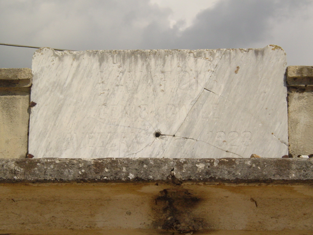 S.Anatolia - Cantu Riu - Epigrafe sulla parete del fontanile con scolpito: "LAVATOIO GENIO CIVILE - AVEZZANO 1923" - Fotografia dell'agosto 2002 di Roberto Tupone