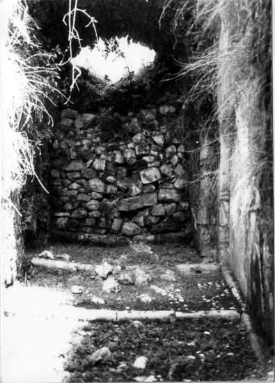 S. Anatolia alta - Località Terrone - Antico palazzo della famiglia Placidi - Ruderi: ingresso e rampe di scale - Fotografia di Roberto Tupone 03/06/1985