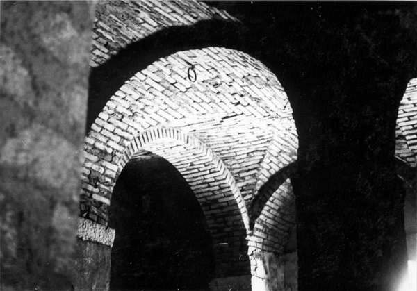 S. Anatolia alta - Località Terrone - Antico palazzo della famiglia Placidi - Colonne e volte all'interno del palazzo - Fotografia di Roberto Tupone 03/06/1985