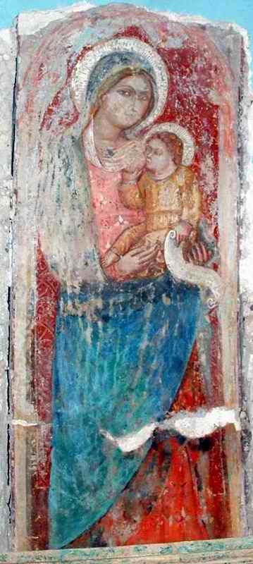 Edicola votiva di S.Anatolia - Madonna che allatta Gesù bambino - Affresco recentemente scoperto sulla volta interna - Fotografia di Roberto Tupone - 2004