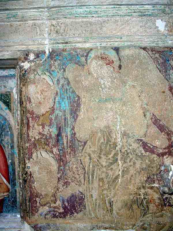 Edicola votiva di S.Anatolia - Angeli e putti al lato sinistro di Sant'Anatolia - Affresco recentemente scoperto all'interno dell'edicola - Fotografia di Roberto Tupone - 2004