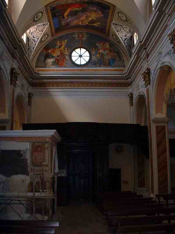 Visione generale dell'interno del Santuario di Sant'Anatolia - Navata centrale e porta d'ingresso vista dall'interno - Fotografia di Roberto Tupone - 2004