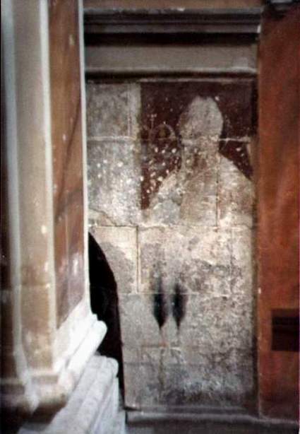 Alle spalle dell'edicola votiva di S.Anatolia - Affresco raffigurante un monaco benedettino o un vescovo - sec. XIII° ca. - Fotografia di Roberto Tupone - 1990