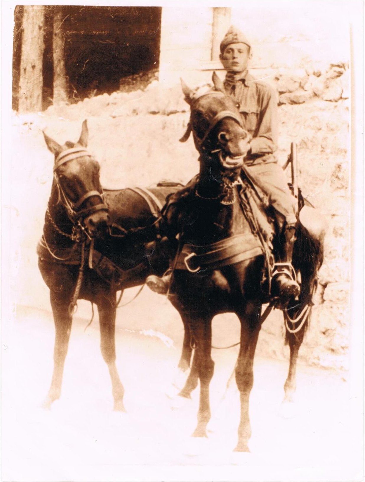 Alessandro Di Berardino (di Angelo e Maria Vittoria Rubeis) - Foto scattata presso la caserma dell'Aquila poco prima che scoppiasse la guerra. I cavalli si chiamavano Dana e Dossena - Fotografia gentilmente inviata su gruppo facebook dalla figlia di Alessandro Vittoria Di Berardini