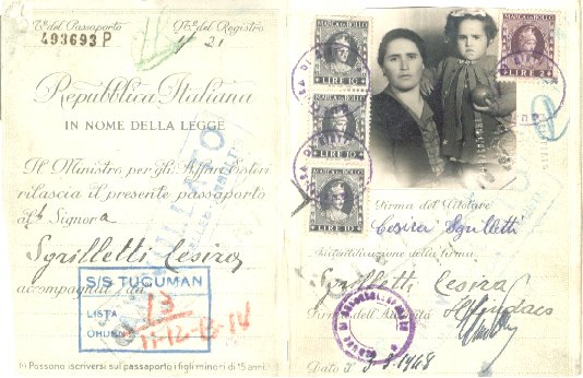 1948 - Passaporto di Cesira Sgrilletti con foto di Cesira e la figlia Anatolia - Fotografia gentilmente inviata da Patricia Merajo - Argentina