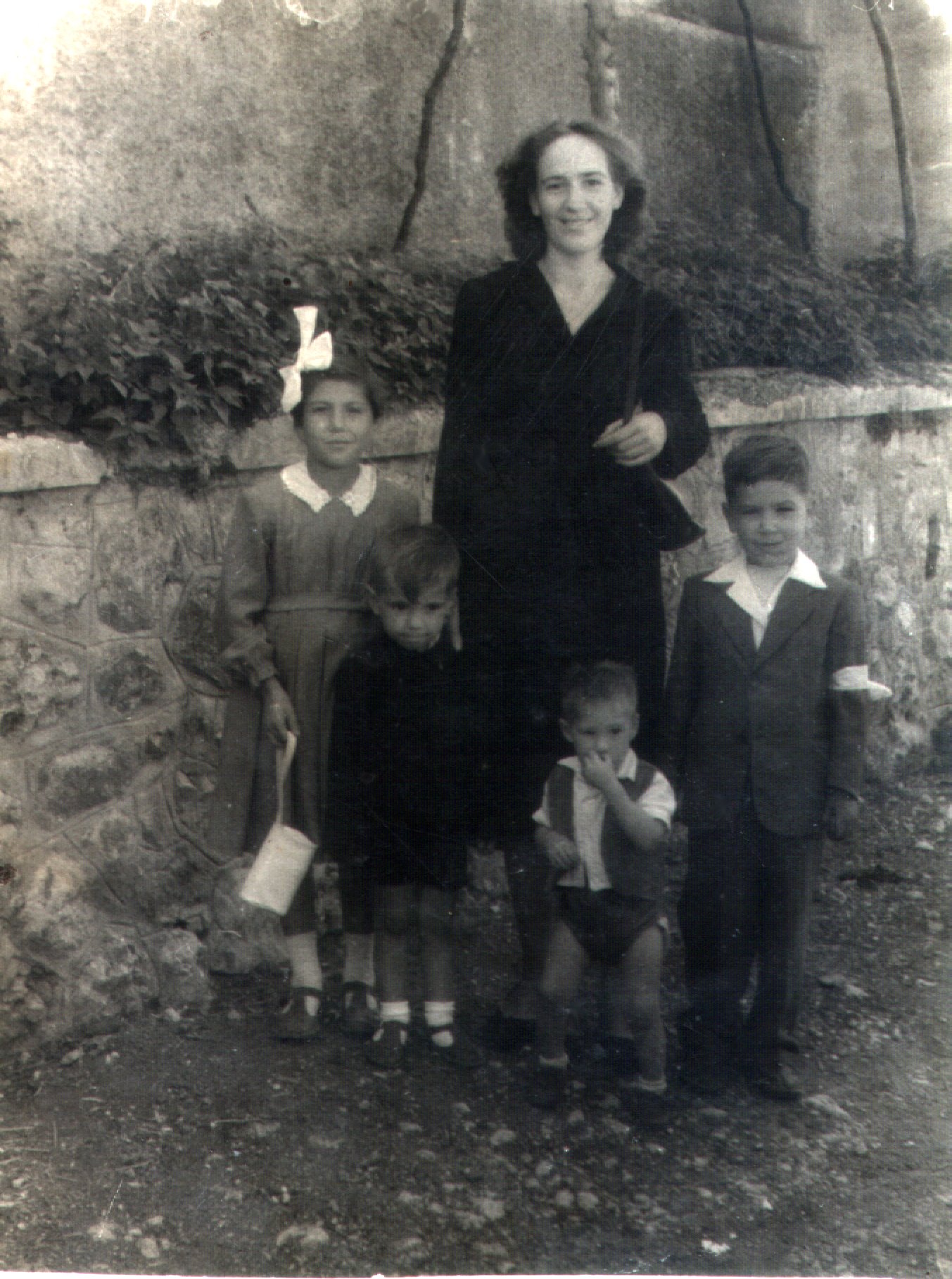 1953 - Cresima di Pietro Spera - Sulla strada sotto la propria casa a S. Anatolia - Maria Spera (di Pietro Antonio e Luisa Luce) con i nipotini: da sinistra: Tecla Spera (di Francesco e Quinta Lanciotti) - Luciano e Guglielmo Tupone (di Giuseppe e Anatolia Spera) - Pietro Spera (di Francesco e Quinta Lanciotti) - Originale in mio possesso