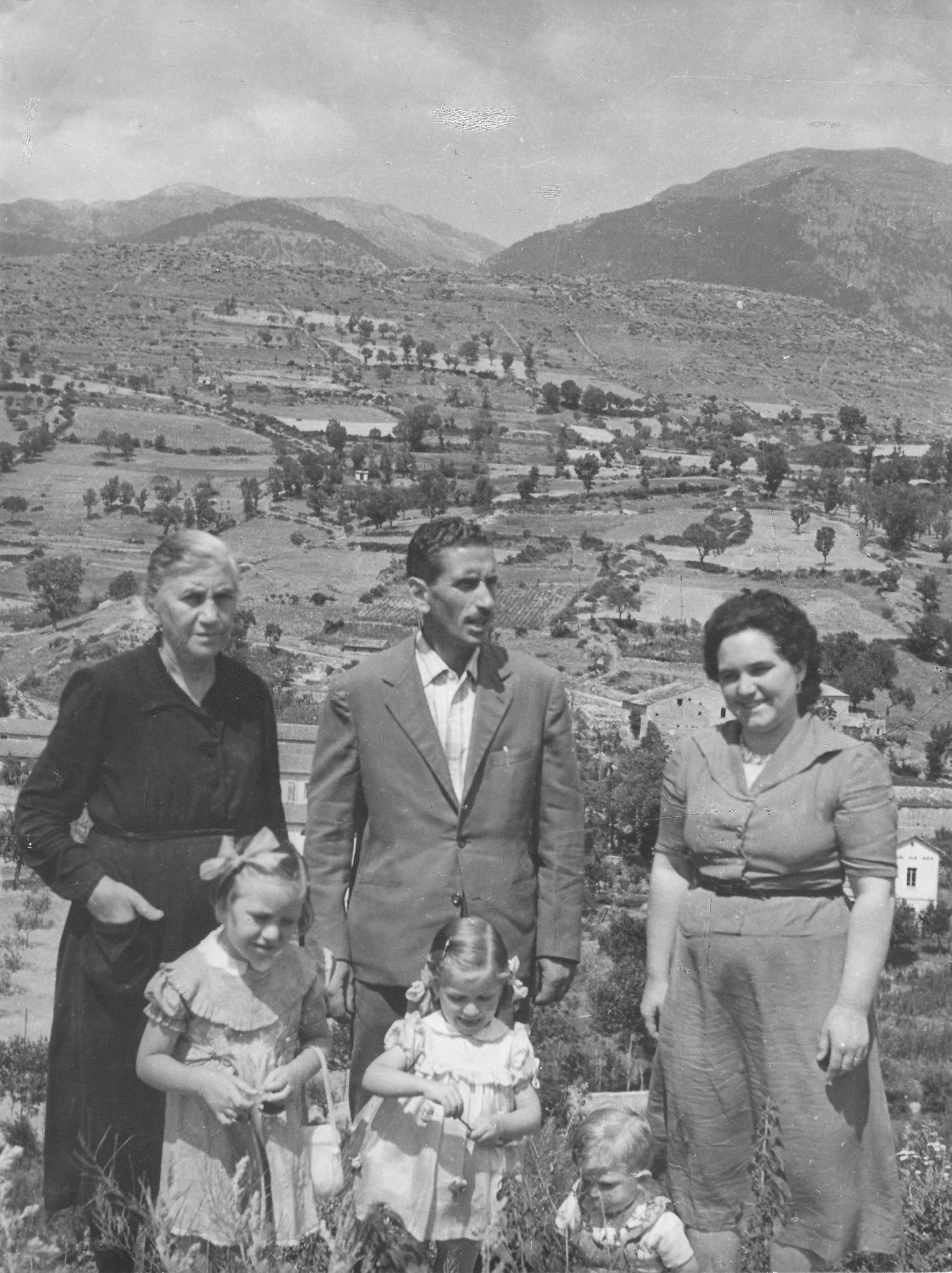 1960 circa - Matilde Amanzi (di Giovanni Amanzi 1849 e Bernardina Peduzzi 1860) il figlio Antonio Amanzi (di Giuseppe Amanzi 1887 e Matilde Amanzi 1892) sua moglie Berardina Panei (di Pietro Panei 1885 e Maria Anna Santori) e i figli di questi ultimi Giuseppe, Anna e Emanuela Amanzi - Fotografia di Alessandra Amanzi (di Antonio e Berardina Panei) - Tratta dal gruppo facebook: "santanatoliesi nel mondo..."