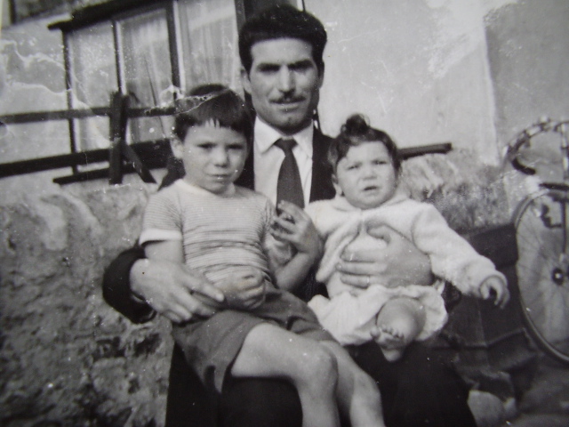 1965 circa - Spirito Rubeis (di Giuseppe e Francesca Chinaglia) e i suoi due figli, Maria e Giuseppe Rubeis (figli di Spirito e Antonia Lanciotti) - fotografia gentilmente inviata da Fernando Jose Lanciotti: "Maria y Giuseppe (hijos de tia Antonia Lanciotti)"