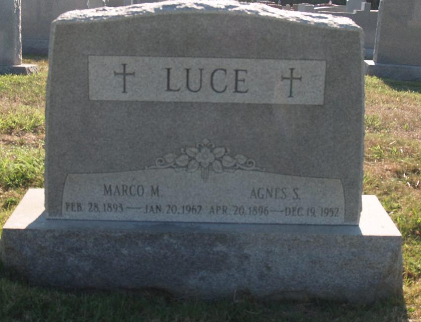 Cemetery, Immaculate Heart, Linwood, Pennsylvania - Lapide funeraria di Marco Luce (di Gennaro e Maria Domenica Fracassi) e Agnese Scafati (di Giovanni Biagio e Annunziata De Santis) - Ci sono degli errori nelle date di nascita - Fotografia gentilmente inviata da Elvira Luce (di Marco e Agnese Scafati) - USA