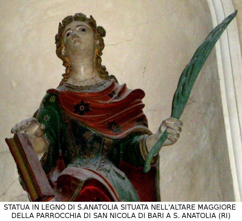 Statua di S.AnatoliaStatua in legno posta sull'Altare Maggiore della Parrocchia di San Nicola di Bari in S.Anatolia (RI) - Fotografia di Roberto Tuponehttps://santanatolia.it/galleria/varie/anatolia-e-audace/Statua%20S.Anatolia.jpg/viewhttps://santanatolia.it/galleria/varie/anatolia-e-audace/Statua%20S.Anatolia.jpg/@@images/image-1200-b682116f17cdd6eda4531f8e8735c824.jpeg