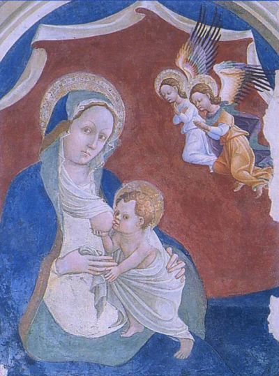 Madonna del Latte - Chiesa di Sant'Amico (L'Aquila) - Autore Andrea de Litio, nato a Lecce nei Marsi ? nel 1410/1420 - morto ad Atri o Chieti nel 1488 c. - Affresco - XV secolo - Fotografia tratta da internet